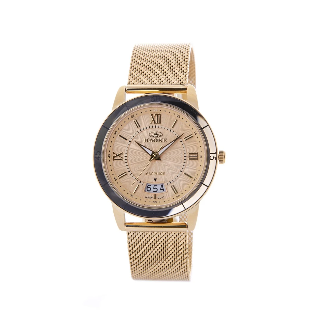 Đồng hồ HaoKe nam vàng mặt vàng dây lưới sapphire